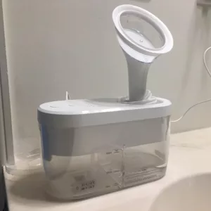 I was sceptical about this earwax machine when I first saw it but it works great. Remember to use warm water, not cold. It doesn’t leak and isn’t messy. There are multiple nozzles to adjust to each person’s ear size.