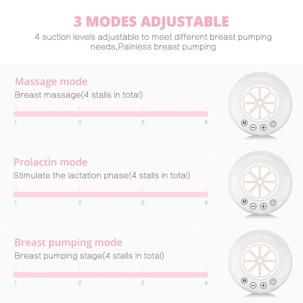 This electric breast pump is compact and handy. You can use it on one breast or both. It’s designed to mimic baby’s natural sucking pattern and very easy to use. The device features 3 adjustable modes and 4 suction levels to meet different breast pumping needs. This pump aims to help you produce more milk in less time. Plus, it’s handy when you’re on the go.