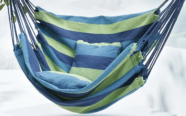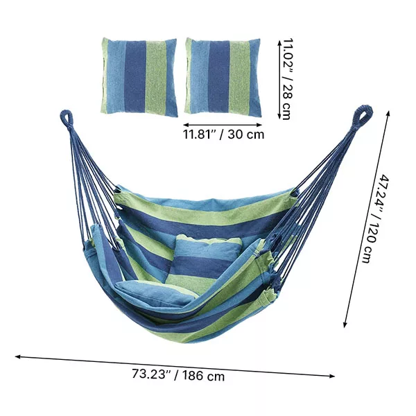 Our hammock swing comes with plush pillows, providing a cosy relaxation spot. With them, your lounging experience will be even more soothing. Enjoy a good book, or just unwind in this comfortable hammock!