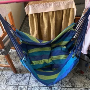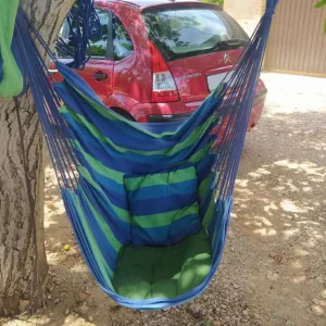 I’m thrilled with my purchase of this hammock swing chair. It’s incredibly relaxing and provides great comfort. I love the stripy pattern. It has become a special spot for my morning coffee. Worth the money.