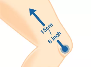 2. Wrap the measuring tape around the widest part of your thigh from about 15cm/6" above the midpoint of your kneecap.
