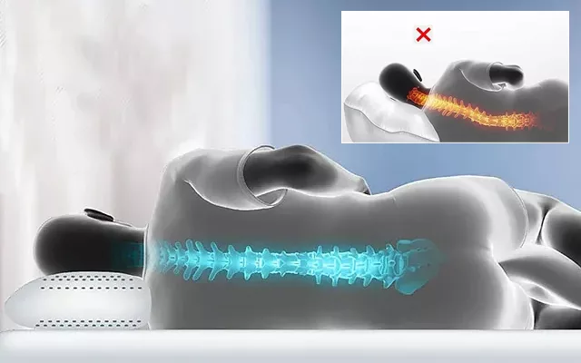 Our pillow features an orthopedic shape. It seamlessly adjusts to the cervical area, providing targeted support. This reduces the strain on this sensitive body area, leading to the gradual relief of your neck discomfort over time.