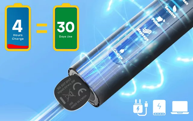 The Nygex toothbrush can operate on a single charge for up to 30 day.