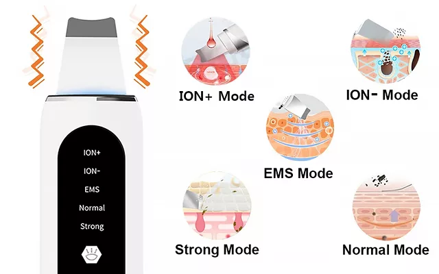 The Nygex ultrasonic scrubber comes with varied options. Each mode targets a different issue, allowing for a personalised and comprehensive skincare routine.