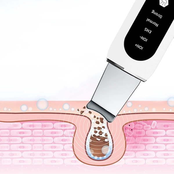 Our scrubber combines two treatments in one: ultrasound therapy and EMS. Together, they help cleanse, rejuvenate, and tighten the skin.